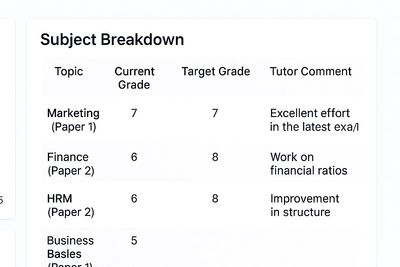 Every student begins with a Diagnostic Assessment designed to identify their current level, learning style, and subject knowledge across key business topics. It’s tailored to their qualification (GCSE or A‑Level) and exam board (e.g. Edexcel, AQA, OCR), so we can meet them exactly where they are.